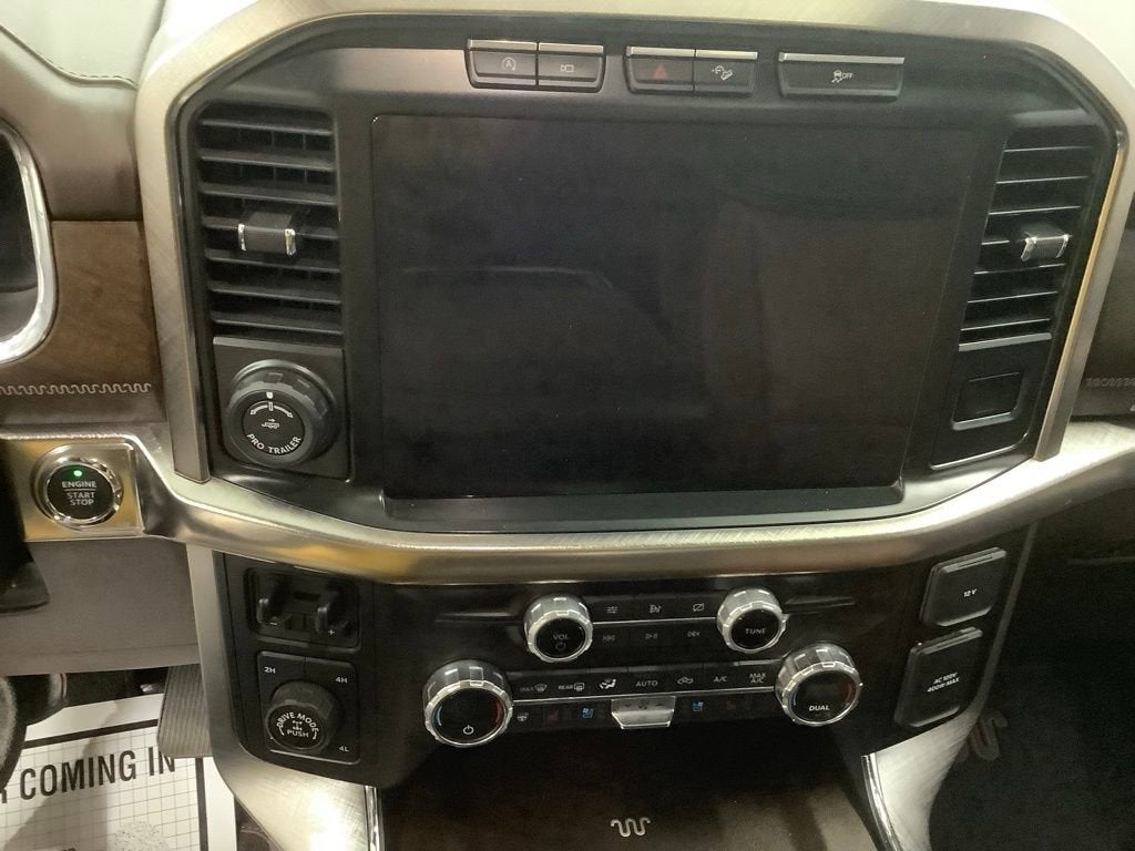 Star White Metallic Tri-Coat 2021 Ford F-150 King Ranch 4WD 10-Speed Automatic 5.0L V8 4WD, 20 Machined-Aluminum Wheels, 4x4 FX4 Off-Road Bodyside Decal, ABS brakes, Alloy wheels, Bright Belt Moldings, Chrome Door Handles w/Body-Color Strap, Chrome Skull Caps on Exterior Mirrors, Class IV Trailer Hitch Receiver, Compass, Electronic Locking w/3.31 Axle Ratio, Electronic Stability Control, Equipment Group 601A High, Extended Range 36 Gallon Fuel Tank, Front dual zone A/C, FX4 Off-Road Package, Heated door mirrors, Heated front seats, Heated rear seats, Hill Descent Control, Illuminated entry, Integrated Trailer Brake Controller, King Ranch Chrome Appearance Package, Low tire pressure warning, Max Trailer Tow Package, Monotube Rear Shocks, Multi-Contour Driver & Passenger Seats, Navigation system: Connected Navigation (90-Day Trial), Off-Road Tuned Front Shock Absorbers, Power Tailgate, Power-Deployable Running Boards, Pro Trailer Backup Assist, Radio: B&O Unleashed Sound System by Bang & Olufsen, Remote keyless entry, Rock Crawl Mode, Traction control, Tray Style Floor Liner, Wheels: 20 Chrome-Like PVD.
